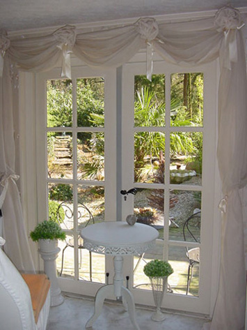 De praktijk van binnen met uitzicht op de fontein.